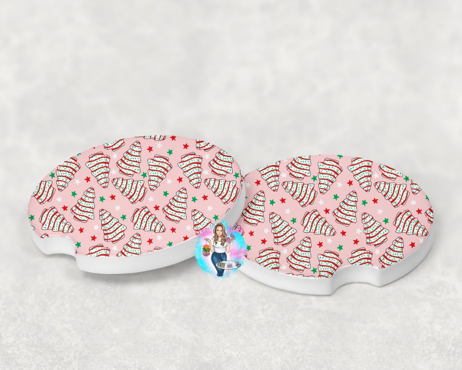 Add a little fun to your car with these car coasters! These coasters fit most vehicle cup holders. They are ceramic so they are easy to clean. They also have a cork bottom. Made of high-quality ceramic.