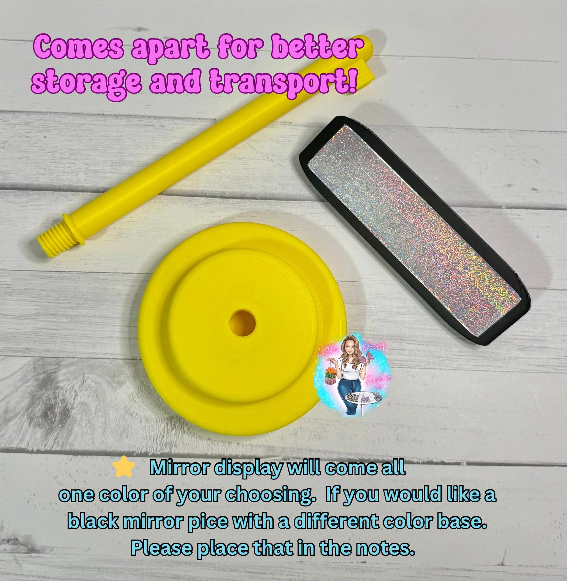 Please note: mirror will come all one color. If you are wanting the black mirror piece with a different color stand please let me know in the notes. Otherwise I will send all one color.