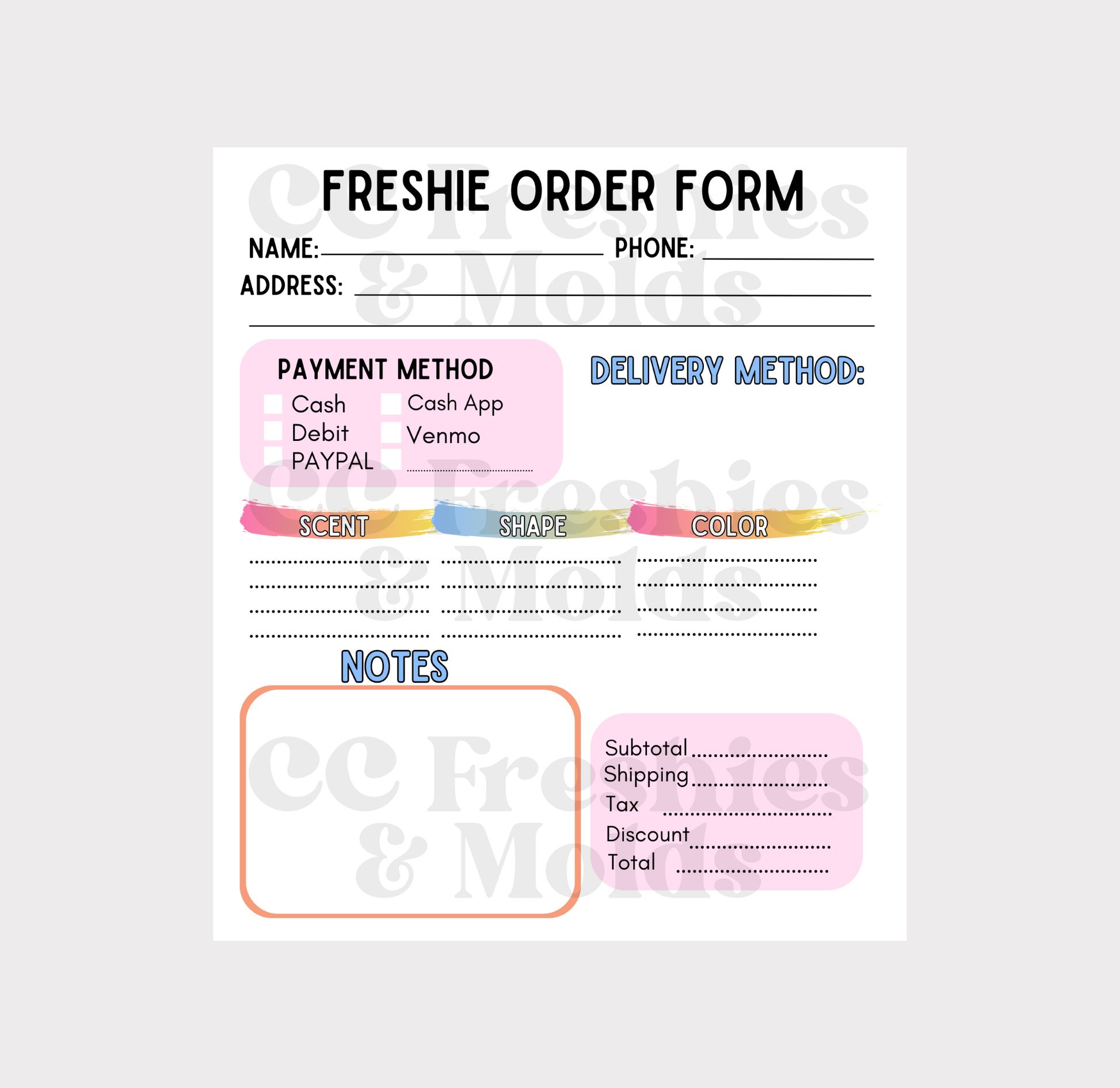 Freshie Order Form Notepad