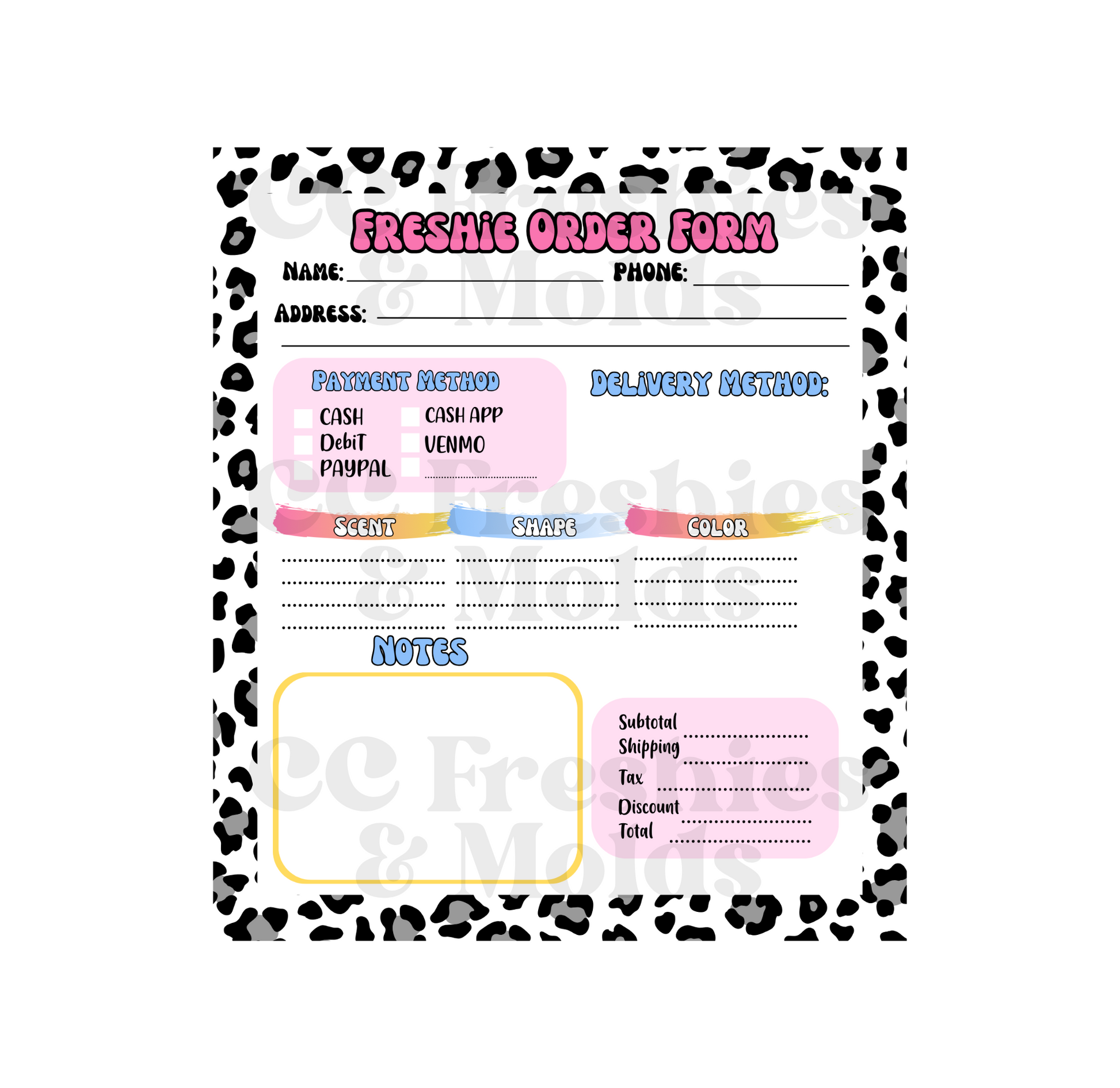 Leopard Freshie Order Form Notepad